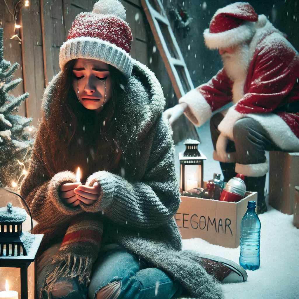Isabella closed her eyes, and more tears rolled down her bruised cheeks. With great difficulty she managed to walk away with her freezing feet and sat under the Christmas tree of the town square.